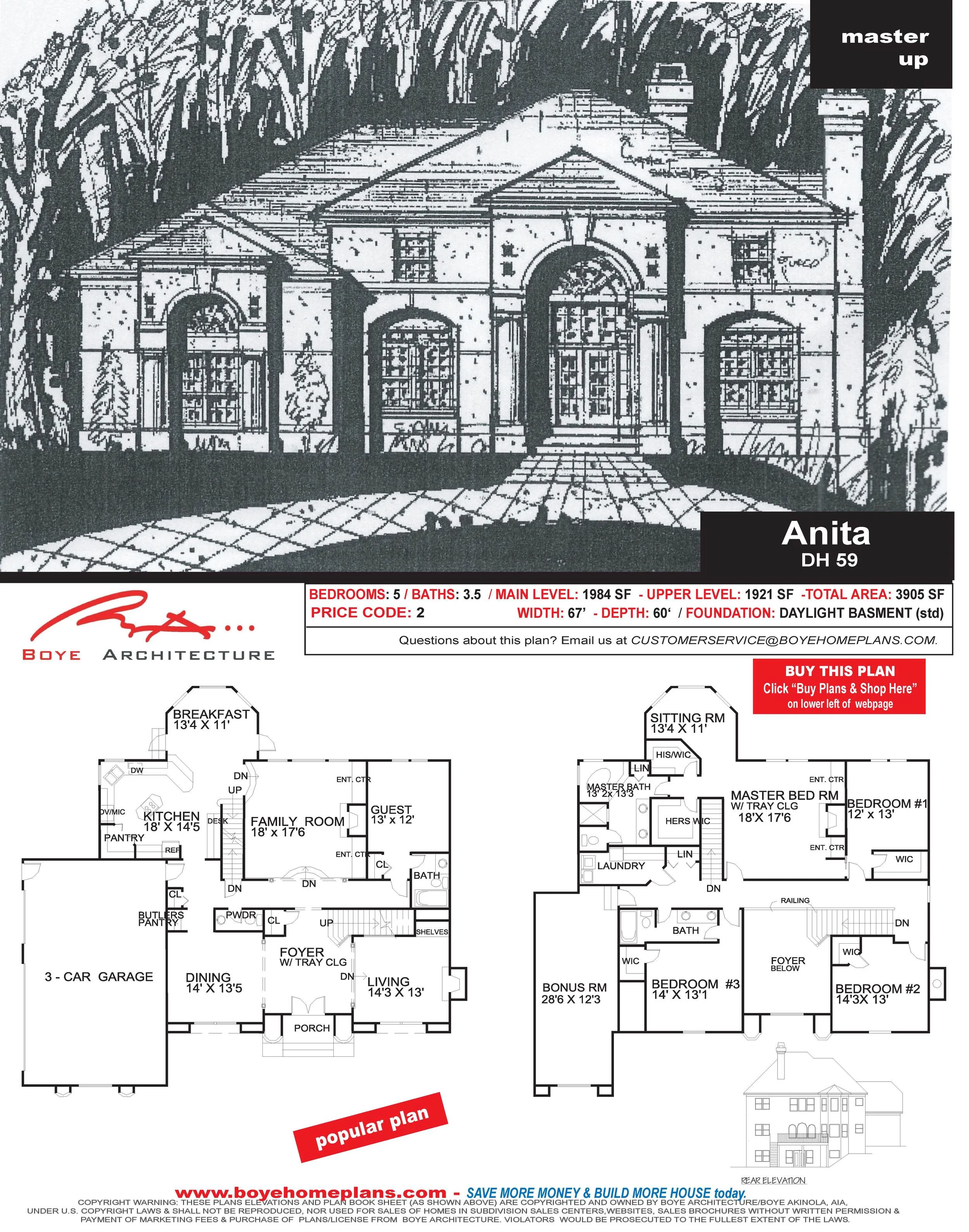 Main Level:1984 sf/Upper Level:1921 sf
